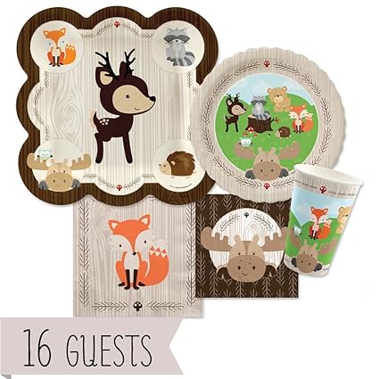 Big Dot Of Happiness Woodland Creatures Baby Shower Or Birthday Party Tableware Plates Cups Napkins Bundle For 16
